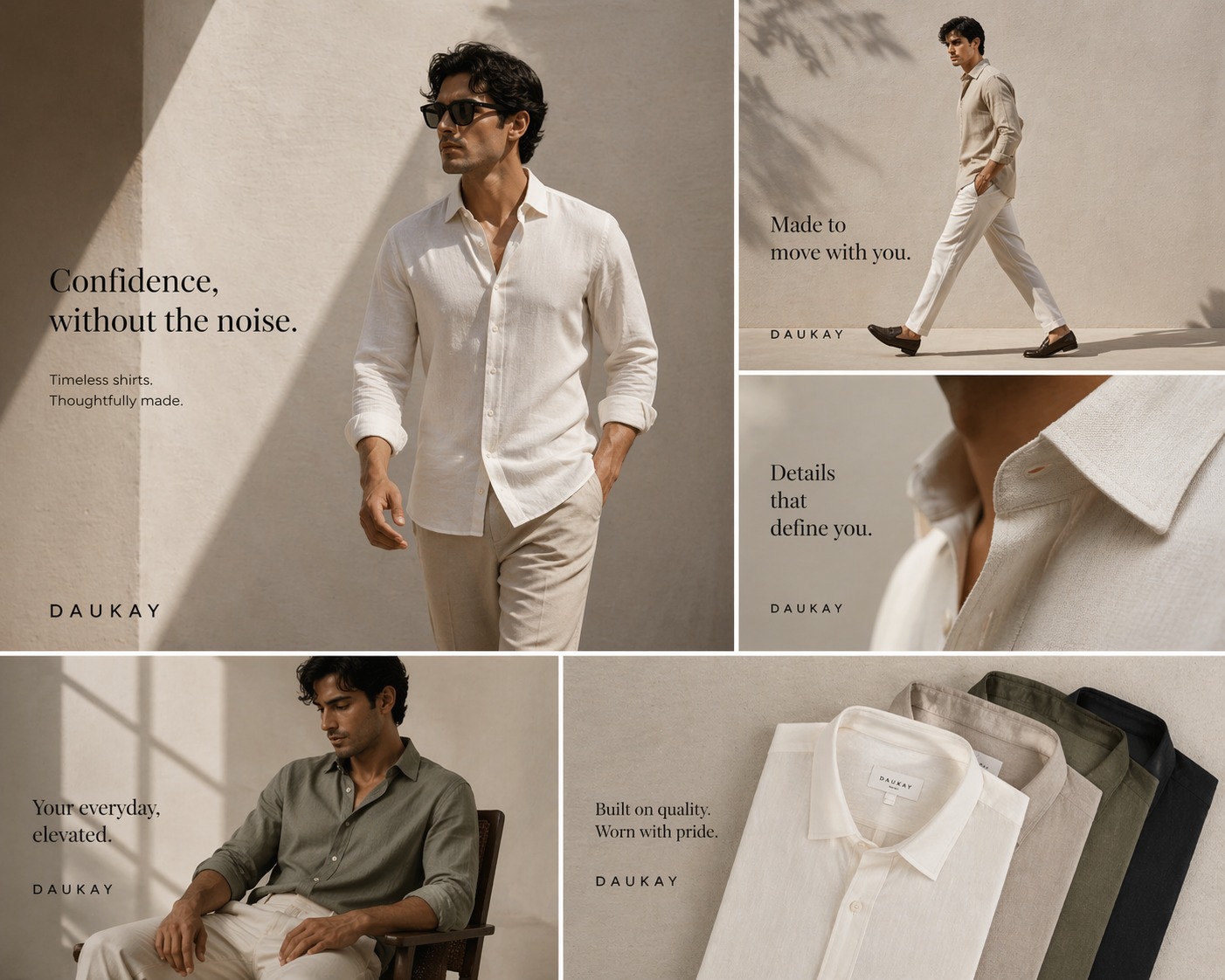 Daukay reimagines everyday wear with a premium lens — transforming essentials into statements of quiet confidence. Our philosophy is not about excess, but about doing the basics exceptionally well.