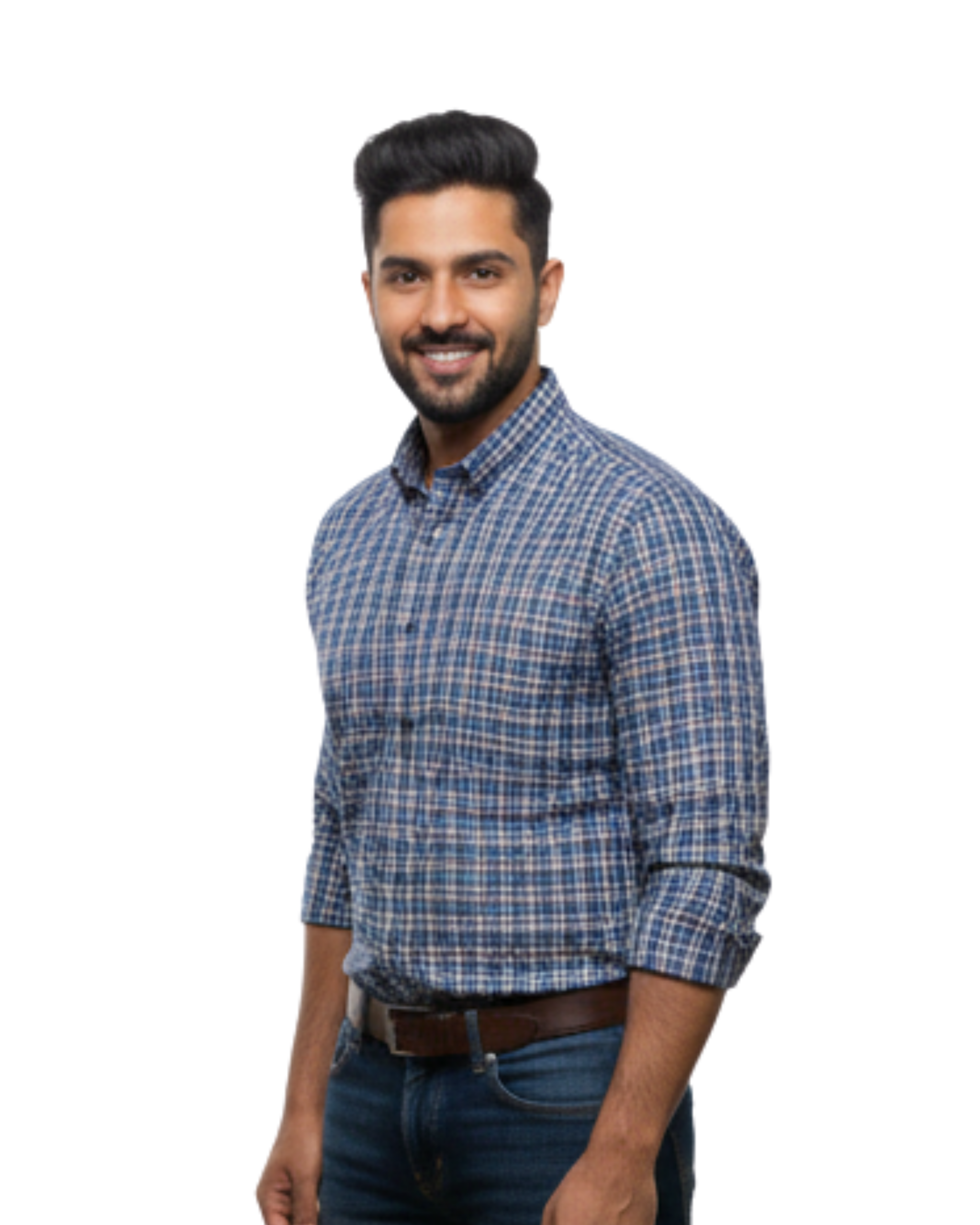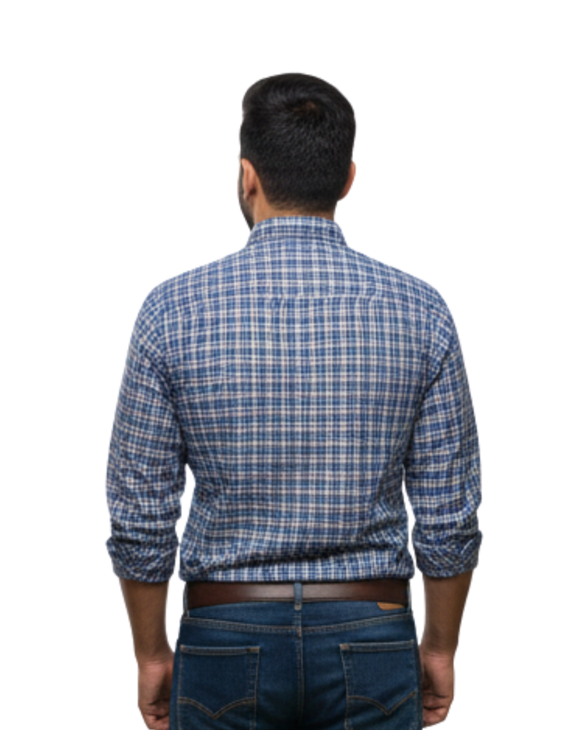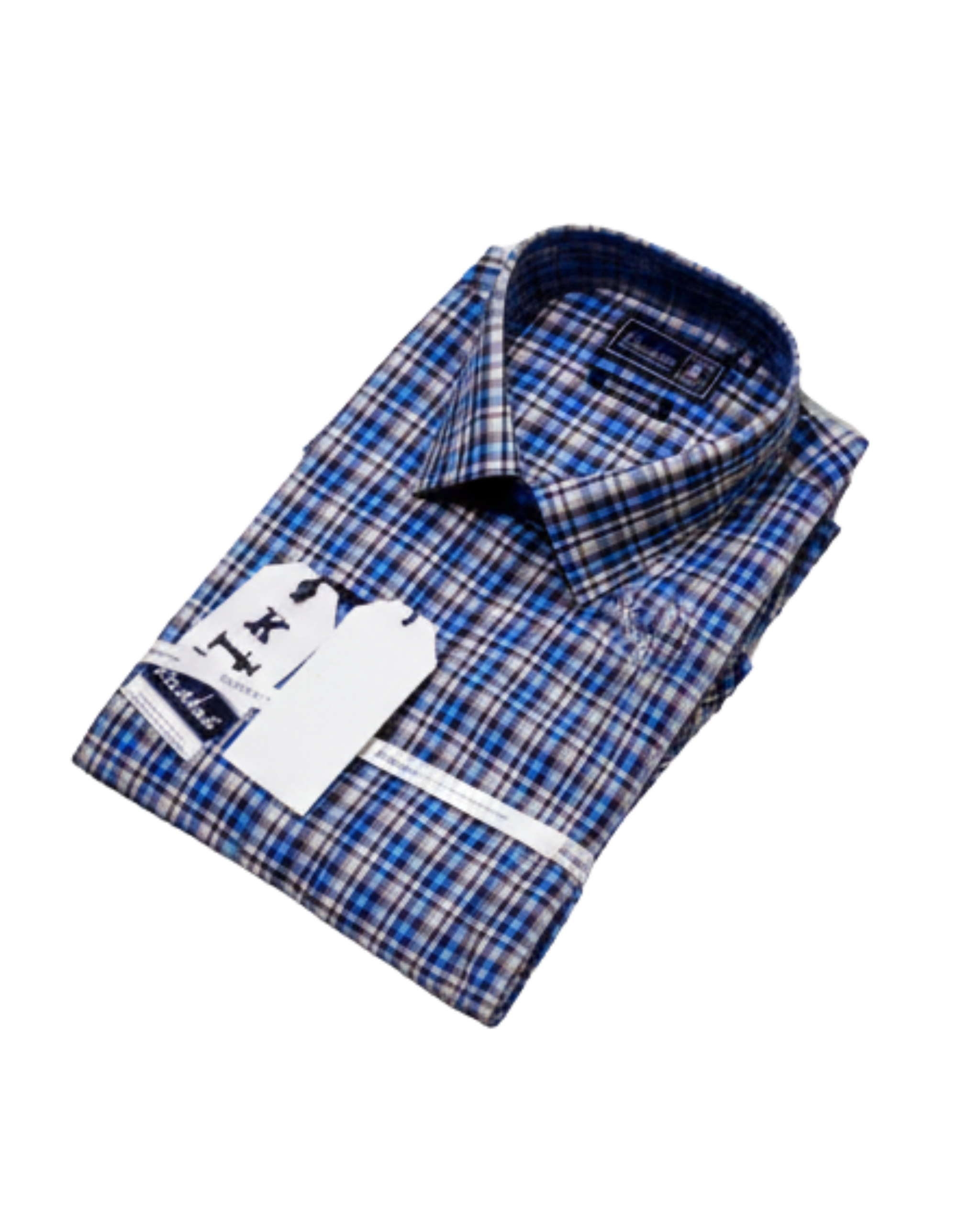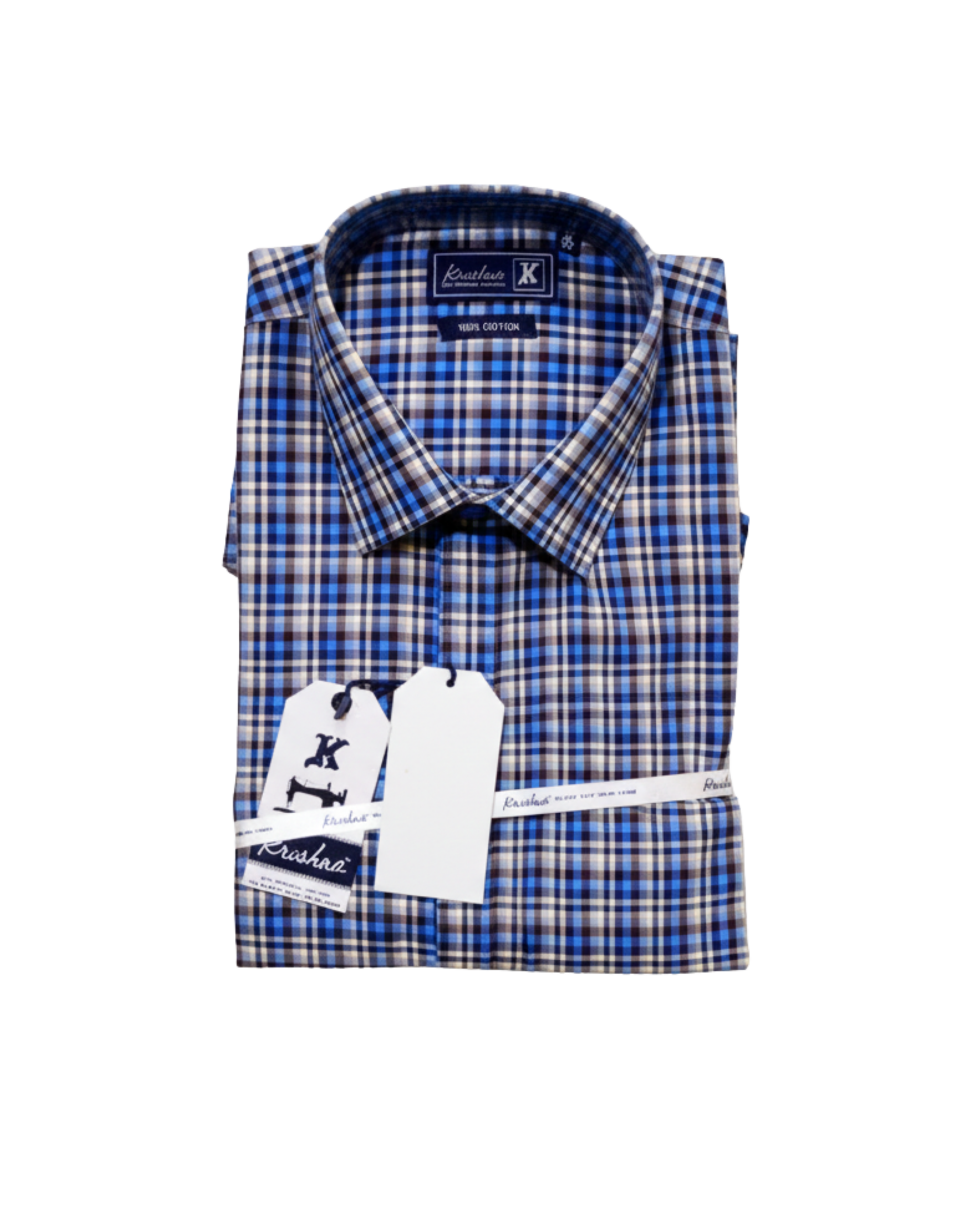 Premium Krishna Cheques Formal Shirt made with 100% cotton fabric for all-day comfort. Stylish blue check pattern, perfect for office and formal wear. Available in multiple sizes.