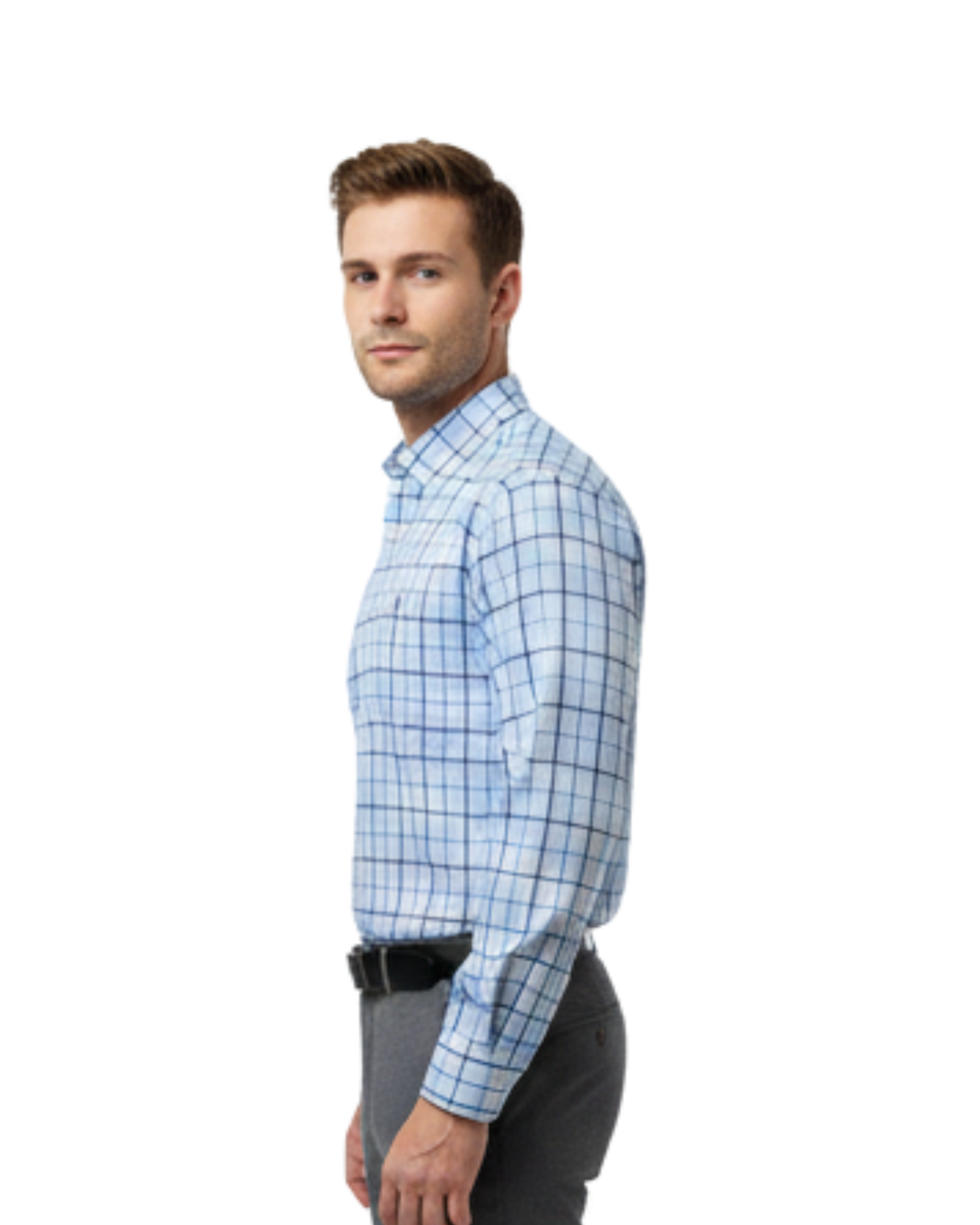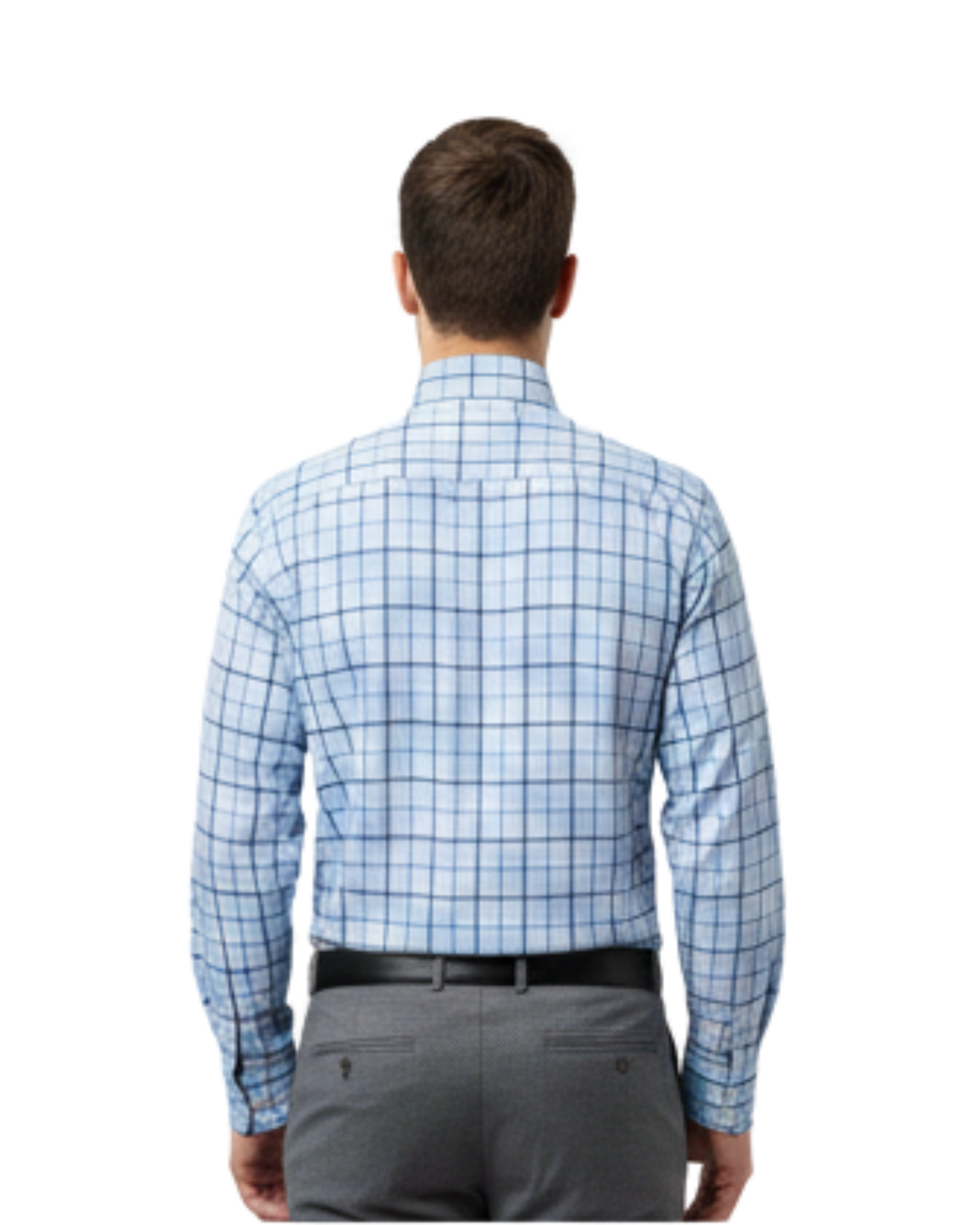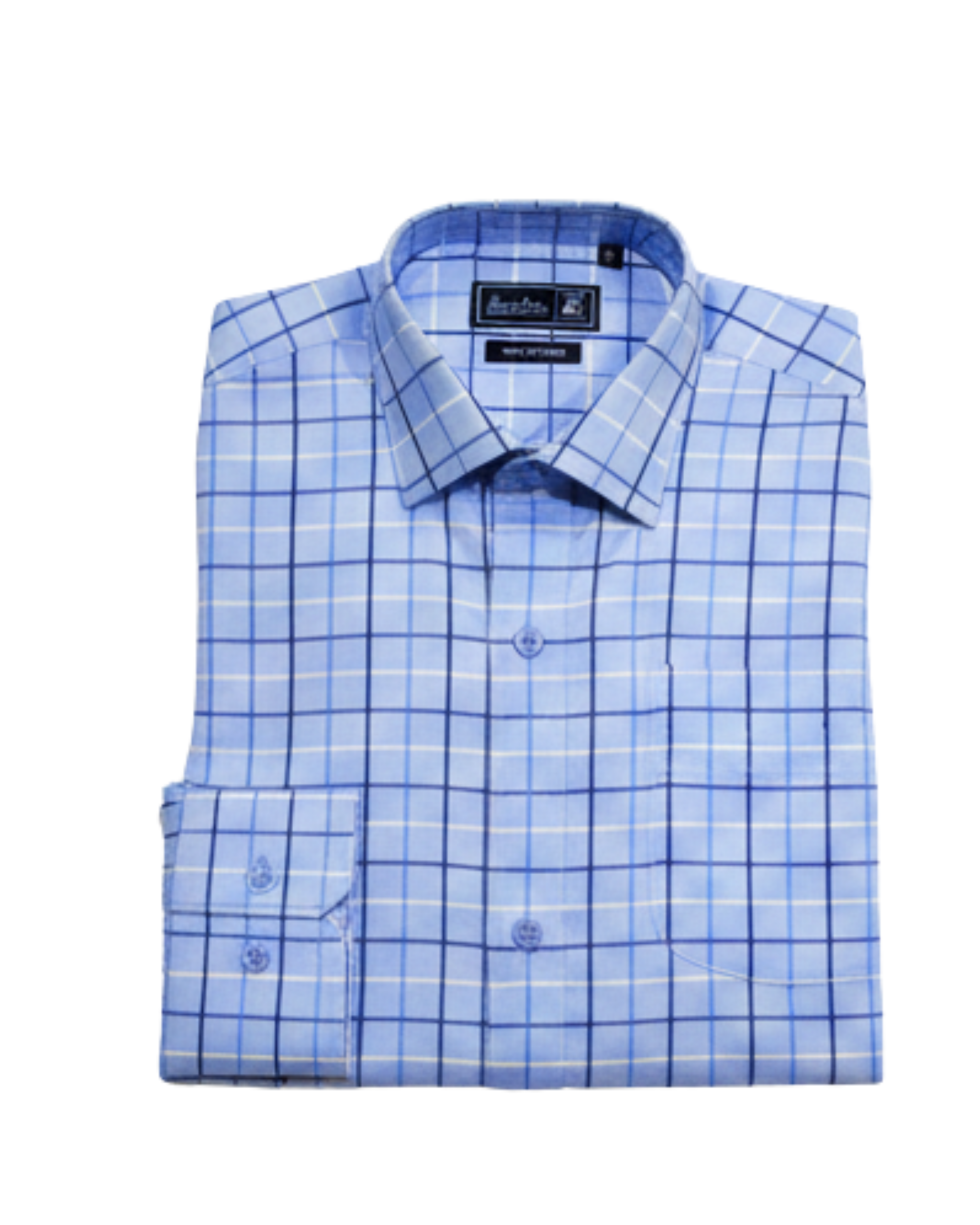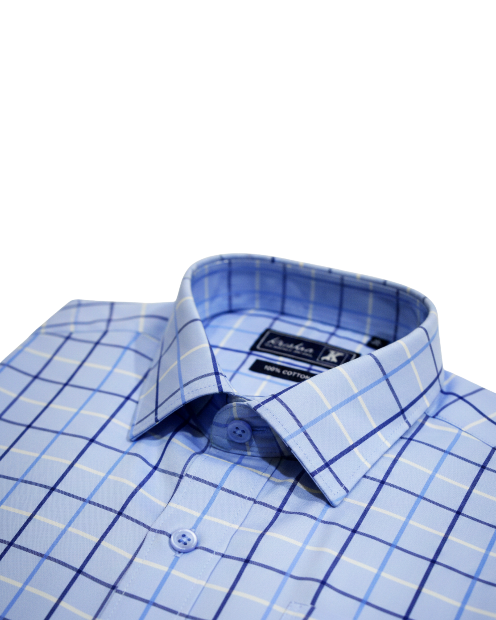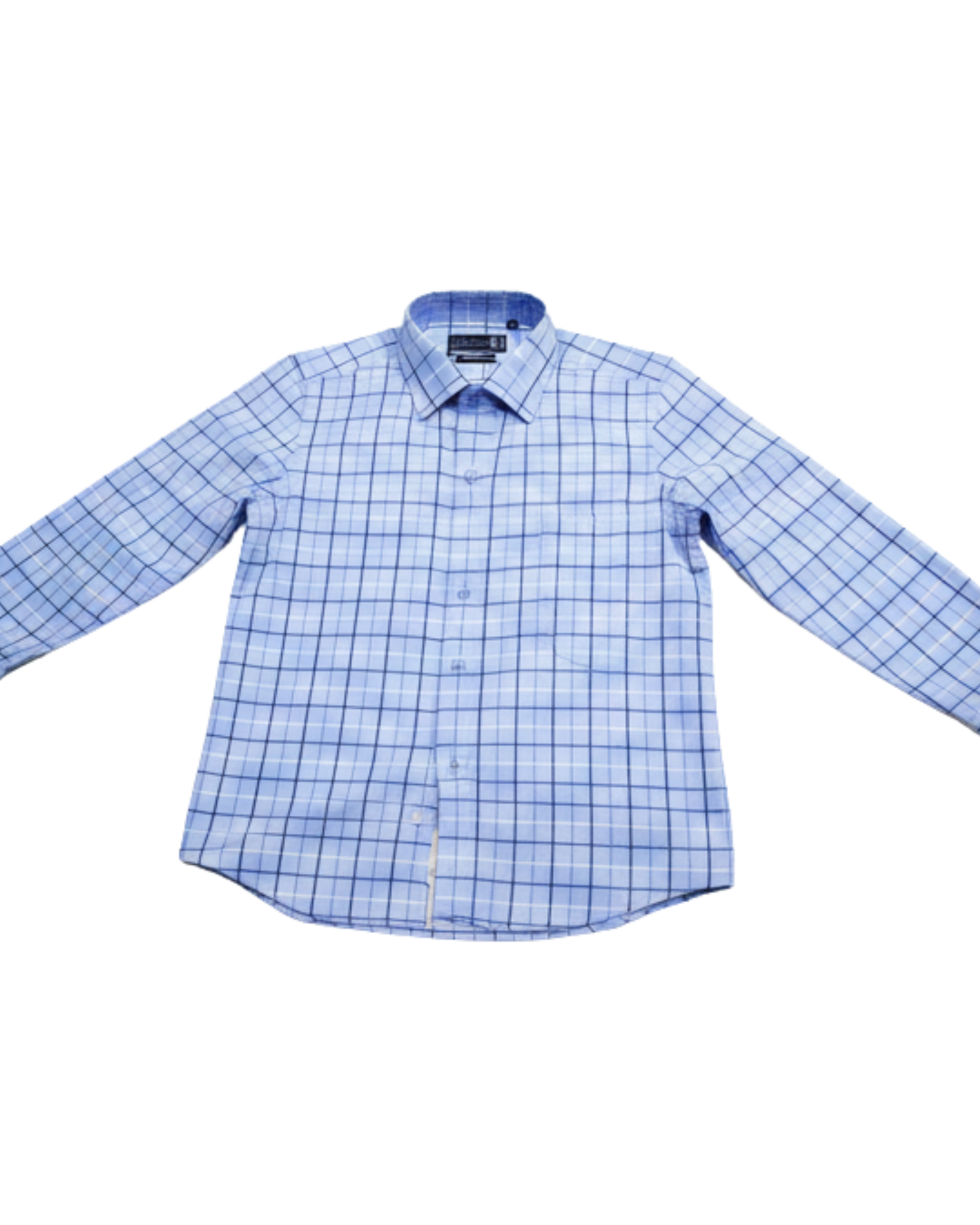 Premium quality 100% cotton formal shirt in elegant light blue cheque pattern. Soft, breathable fabric with full sleeves, ideal for office wear, formal meetings, and daily professional use.